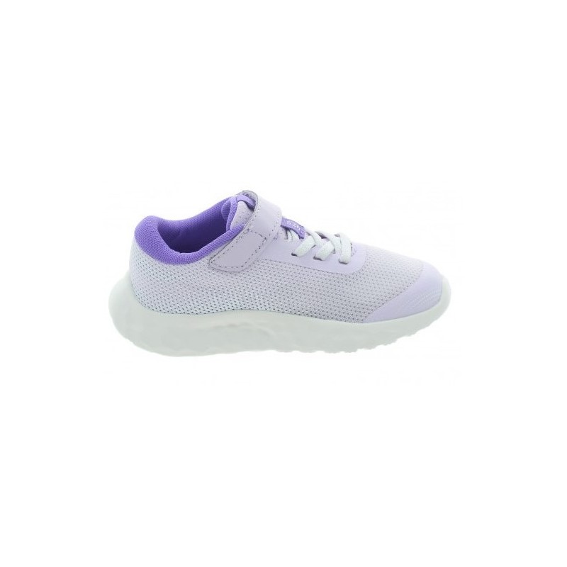 -Parte superior fabricada en malla transpirable que aporta ligereza a las zapatillas, y ayuda a controlar la humedad del pie - Cierre de cordones elásticos combinada con tira de velcro - Color blanco con detalles en morado. - Símbolo de la marca en el lateral. - Recomendadas para: Ideales para carreras cortas y caminatas - Mediasuela con goma EVA que le da un plus de comodidad, estabilidad y amortiguación -- Diseño WIDE con horma ligeramente más ancha. - Forro interior textil con cuello acolchado, que le otorga un ajuste muy agradable - Lengüeta acolchada, de malla transpirable - La suela tiene un diseño que aporta una tracción óptima para un agarre perfecto durante la carrera - Medidas de la plantilla 15 cm paa una talla 26 EUR