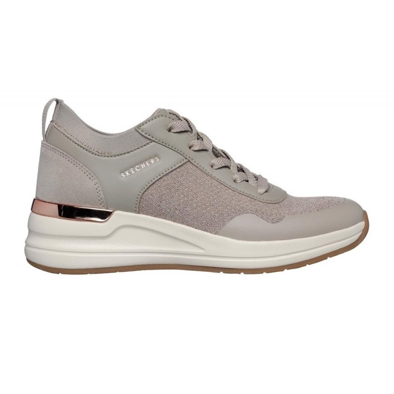 Brilla con tu estilo deportivo con Skechers Street™ Billion 2 - Winning Streak. Esta moderna zapatilla con cordones cuenta con una parte superior de tejido knit brillante, duraleather y ante, cuello acanalado, media suela con cuña y una plantilla Skechers Air-Cooled Memory Foam®.
