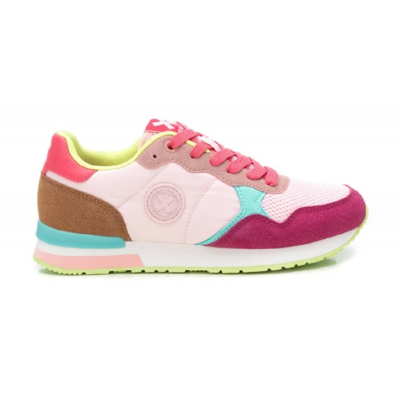 Zapatilla de mujer, de la marca Xti. Fabricada en combinación de textil y material que imita la piel. Cierre mediante cordones. Suela de goma antideslizante. Este modelo ha obtenido el certificado vegano por la organización mundial PETA (Organización de los derechos de los animales).